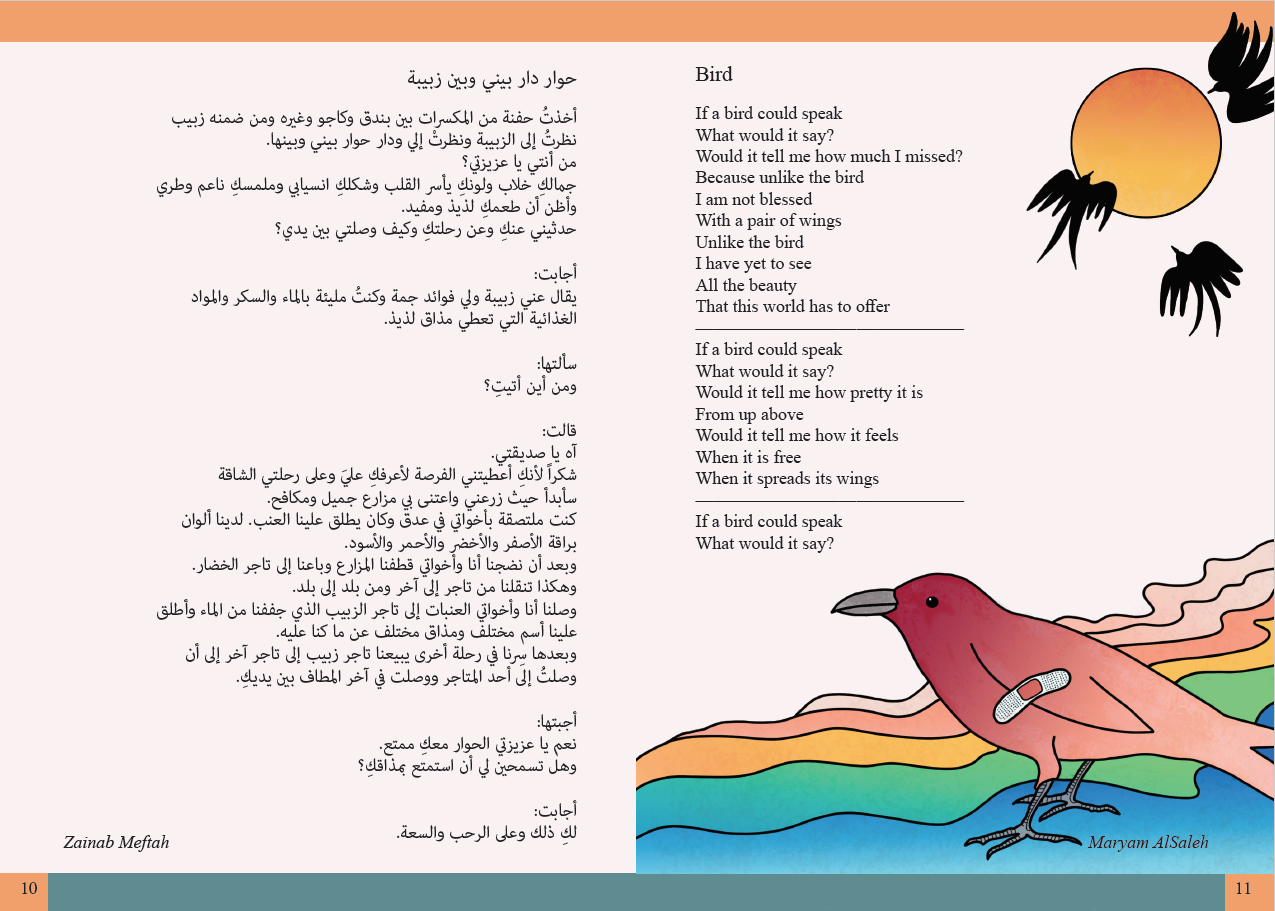 This anthology is the delightful result of our hard work. It has been beautifully illustrated by our illustrator Fatema Al-Fanar and features poetry written in the course of the workshops.